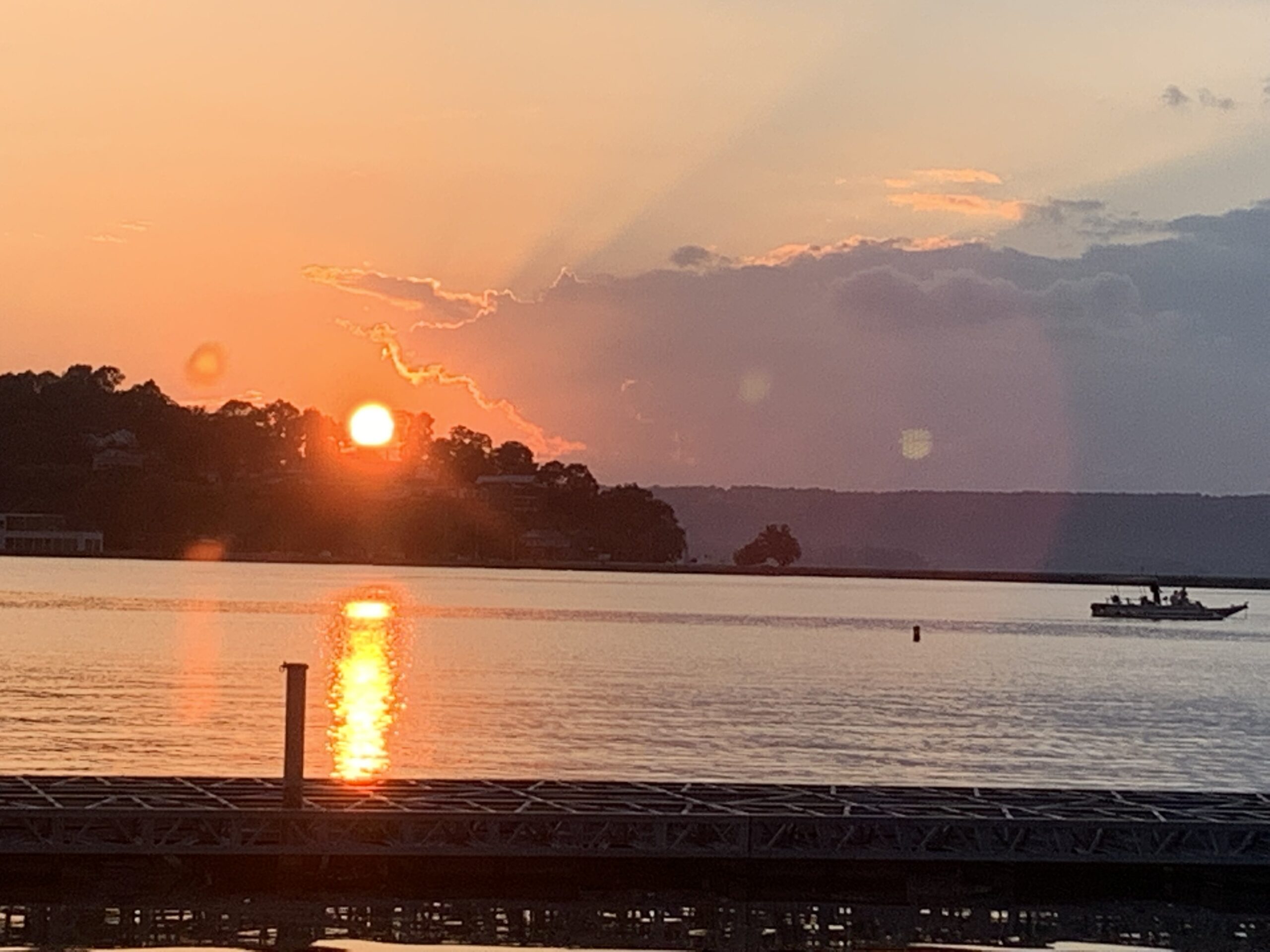 One of our top moments (TMM) came on the Little Tennessee near Tellico Village. We dropped our dinghy and traveled the last 13 miles to Tellico Dam. As we moved upriver, we kept hearing “thunder”—but it wasn’t weather; it was motorcycles roaring along the Tail of the Dragon, the legendary 11-mile road with 318 curves. As we approached the dam, the temperature dropped 20 degrees, the water turned crystal-clear, and the world felt surreal. We floated with a picnic lunch, stunned by the beauty – an omen of wonder to come.
