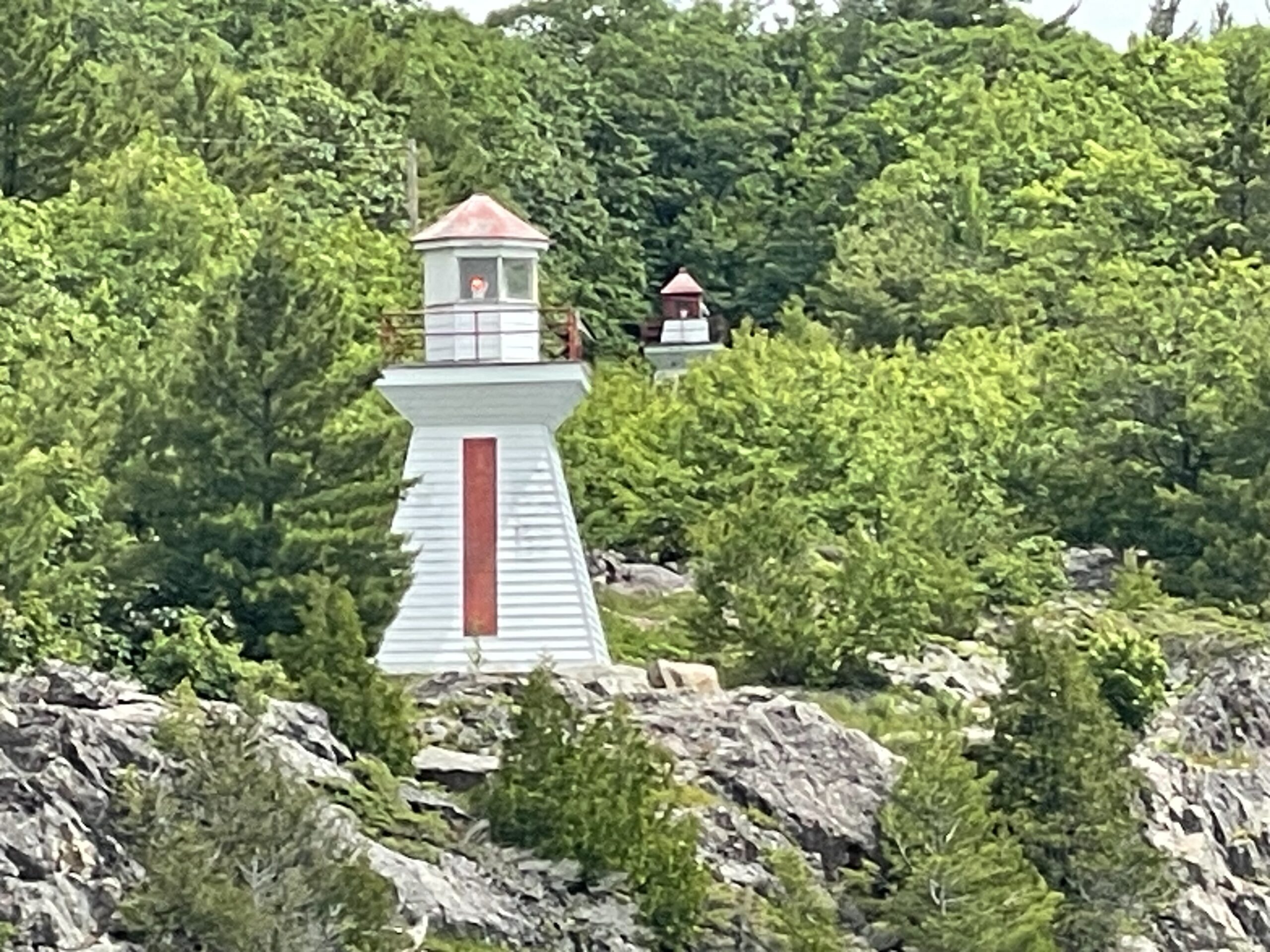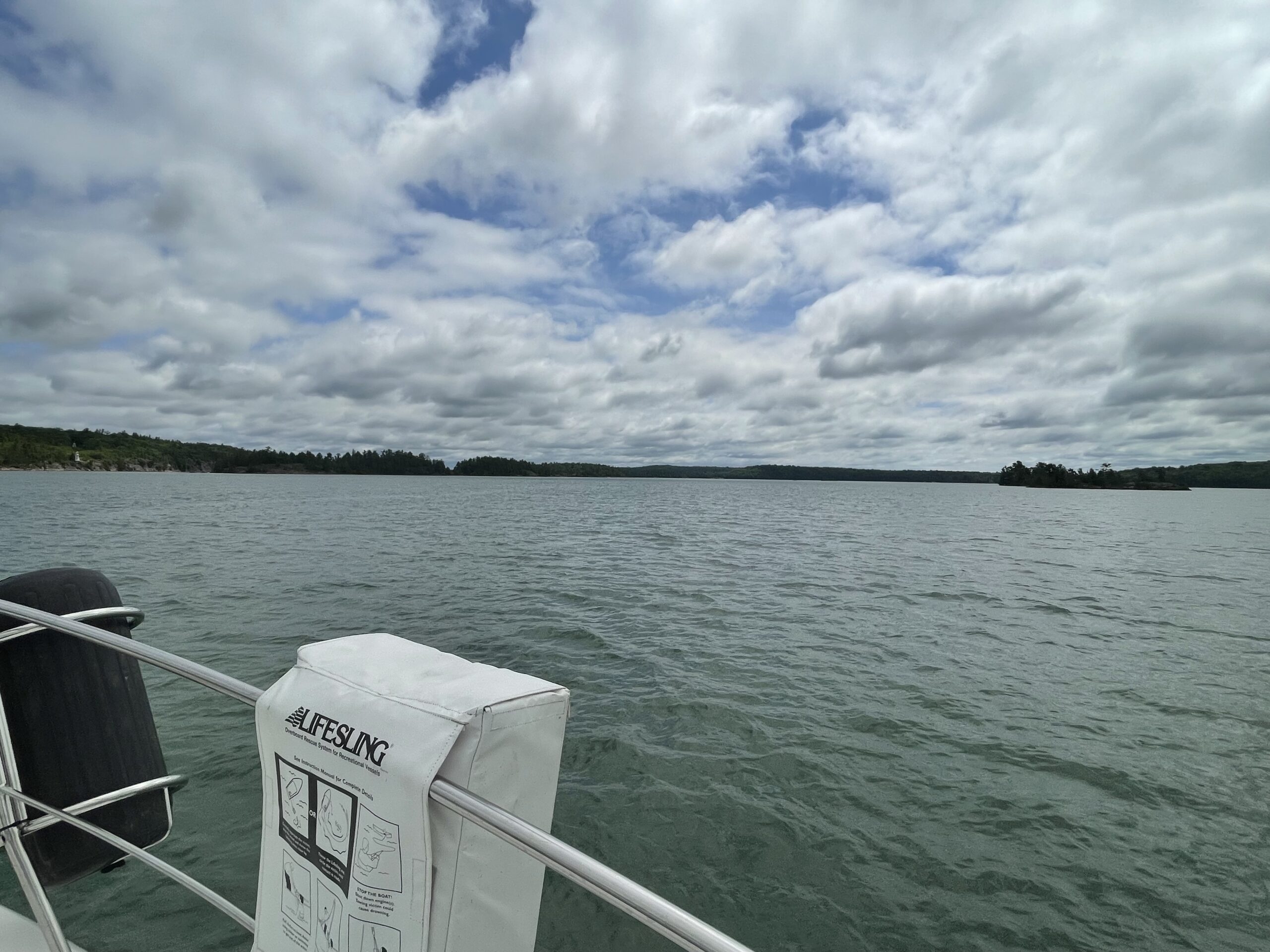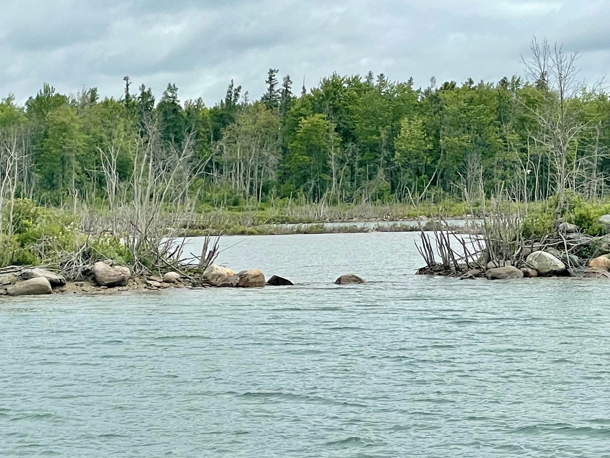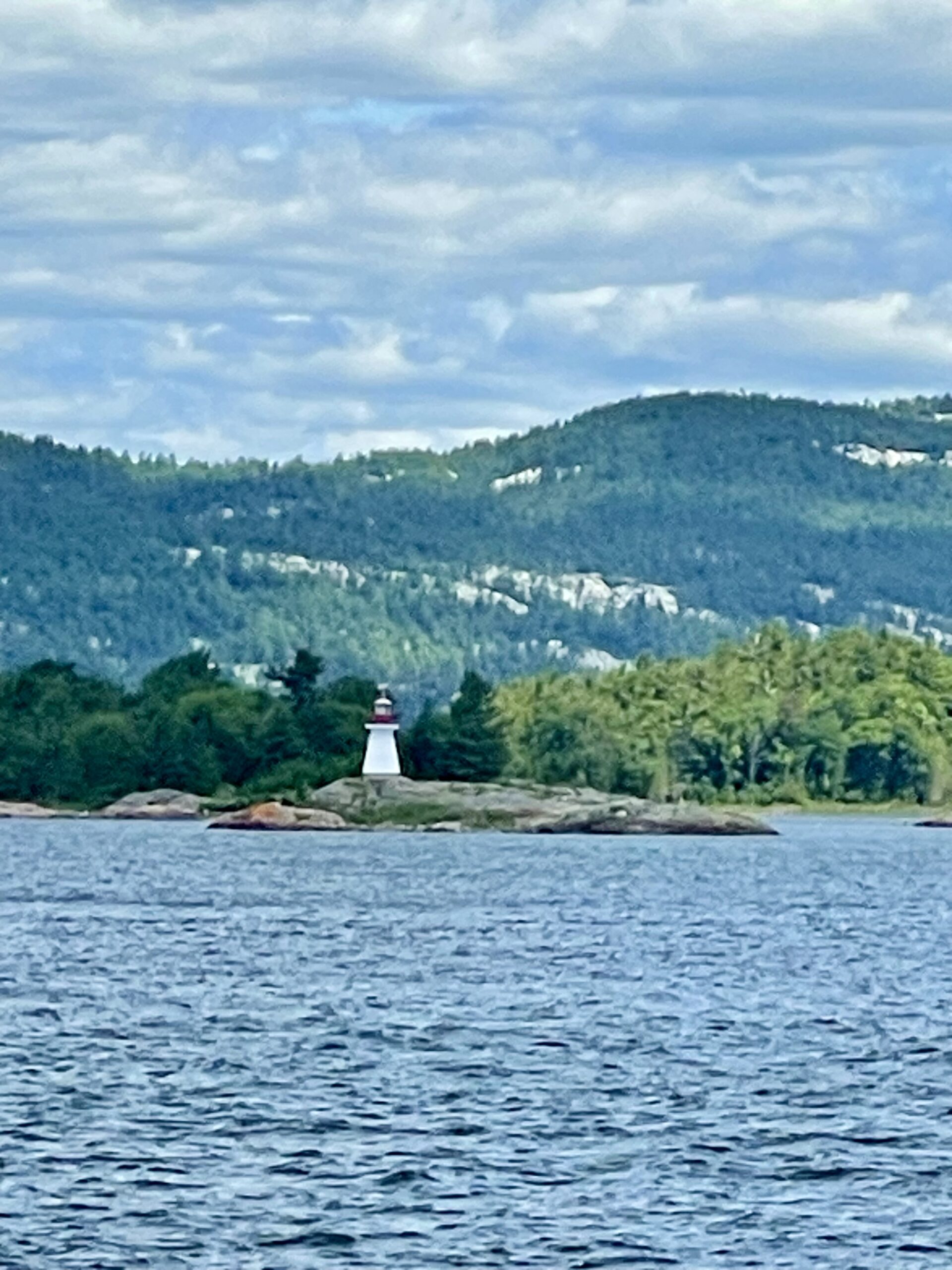 We left Sault Ste. Marie in a drizzle and haze about 9 and headed down the St. Mary’s River and turned east before we would cruise through the down bound channel narrow cut the Coast Guard made sure we missed on our way up. We navigated between a few islands and the terrain changed. Heavenly. The sun came out. We were back amongst the granite rock, the cypress and pine trees, and the feeling of oh – so Canada. It’s hard to describe the quaintness, the landscape, and the feeing of the North Channel. Thousands of granite islands with hues of pink, caramel, gray, and white, the beautifully waterline of cypress and pines with varying shades of green, deep blue-green water, fresh crisp air, and a sweet serenity. Like most of our trip, we were alone on the water, and this day it was perfect.