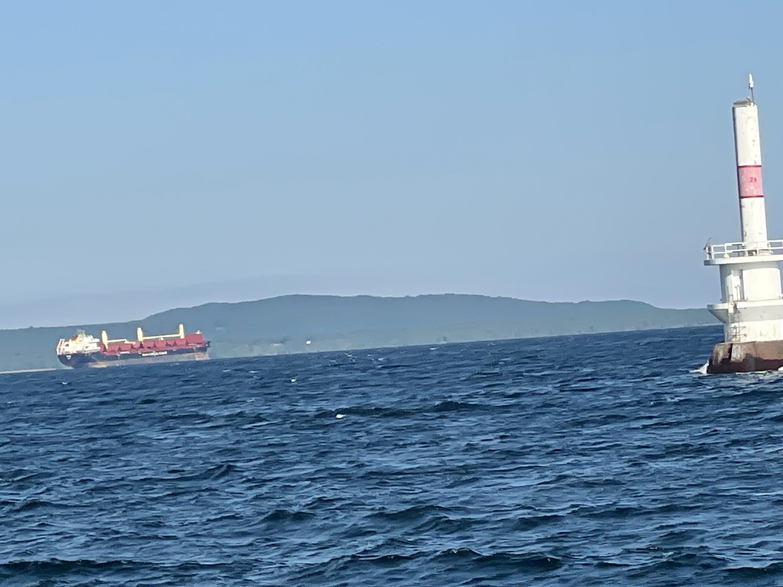 The downbound channel is a more direct route on the west side of an island, the upbound veers east and is a longer route. Freighters use the assigned channel, and pleasure craft can use either giving way to the freighters. The problem in this case, we were approaching a very narrow cut in the granite that ran a mile long. There is very little room for the freighter to navigate, and a pleasure craft must hole up if you can find a place where you won’t be in the rocks. In less than ideal conditions, we were thankful that our Coast Guard was on top of navigation that day.